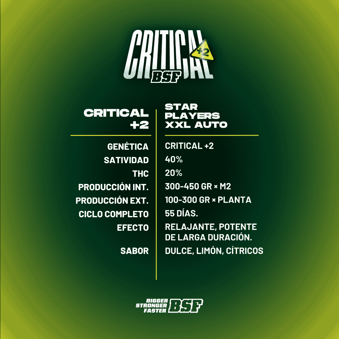 Critical + 2 XXL Auto es una gran genética para tu colección e ideal para compartir una rica comida, una tarde de risas con amigos o un buen libro